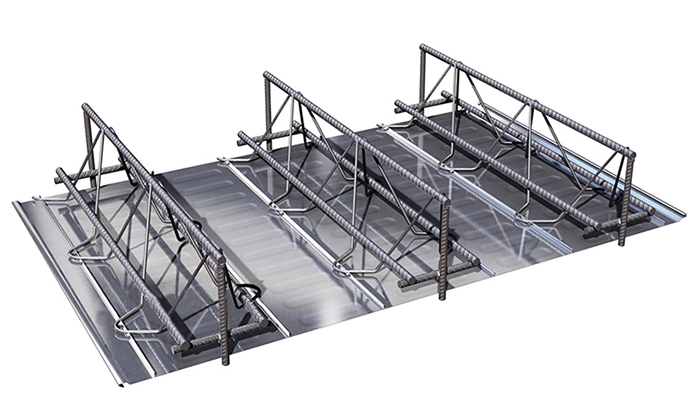 采用桁架樓承板后可根據(jù)需要將樓板設(shè)計成雙向板,等同于傳統(tǒng)的現(xiàn)澆鋼筋混凝土雙向配筋樓板,而壓型鋼板組合樓板是難以實(shí)現(xiàn)雙向板的,采用雙向板不僅減小樓板結(jié)構(gòu)層厚度、降低結(jié)構(gòu)自重,增大跨度和開間,而且更加經(jīng)濟(jì)合理。